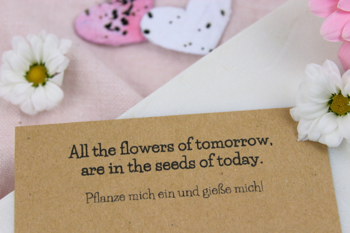 Ich glaube aber, dass ich dem einen oder anderen erklären muss, was es mit dieser Bastelidee überhaupt auf sich hat. Die kleinen Seedbomb Herzen, die ich gemacht habe, sind bestückt mit kleinen Blumensamen. Wenn man die Herzen nun in Blumenerde einpflanzt wachsen daraus wie bei einem Saatteppich schöne Blumen, nur eben selber gemacht und in einem kleineren Format! Ich hoffe, dass ich es erklären konnte! 🙂
