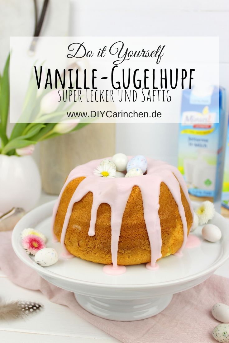 Diesen leckeren Beitrag habe ich mir gemeinsam mit laktosefreier Milch von MinusL ausgedacht. Bei mir wurde Laktoseintoleranz festgestellt, als ich ein Teenager war. Damals als Teenager war diese sehr ausgeprägt. Anfänglich war dies eine ziemliche Umstellung, da ich wie viele von euch wissen, total gerne Kuchen und Torte esse. Außerdem trinke ich morgens gerne eine kalte Milch zum Frühstück. Da ich auf nichts verzichten wollte, bin ich damals schon auf Laktosefreie Produkte umgestiegen.super leckeres Vanille-Gugelhupf Rezept mit rosa Zuckerguss und OstereiernKuchen und Torte kann ich im gewissen Maß wieder problemlos essen, aber einen Becher laktosehaltige Milch sollte ich mir dennoch verkneifen. Obwohl ich wieder vieles problemlos essen kann, verwende ich zu Hause laktosefreie Produkte! So gehe ich erstens auf Nummer sicher und zweitens mag ich die laktosefreie Milch geschmacklich auch sehr gern. Aber jetzt will ich euch nicht länger auf die Folter spannen und mit dem Rezept starten! Das Rezept reicht für eine normale Gugelhupf Form oder zwei kleine.super leckeres Vanille-Gugelhupf Rezept mit rosa Zuckerguss und Ostereiern