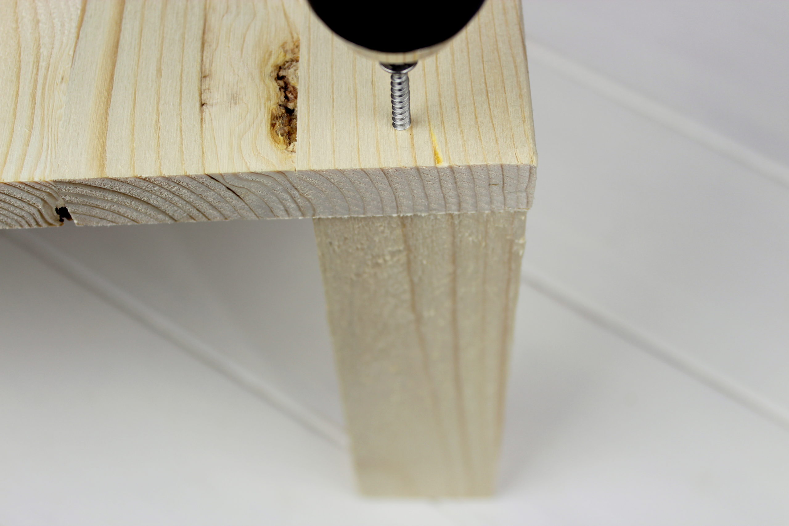 - Befestigt dann die Seitenbretter mit Schrauben an den Kanthölzern. Ich habe pro Brett 4 Schrauben verwendet. (60x10x2 cm Bretter)