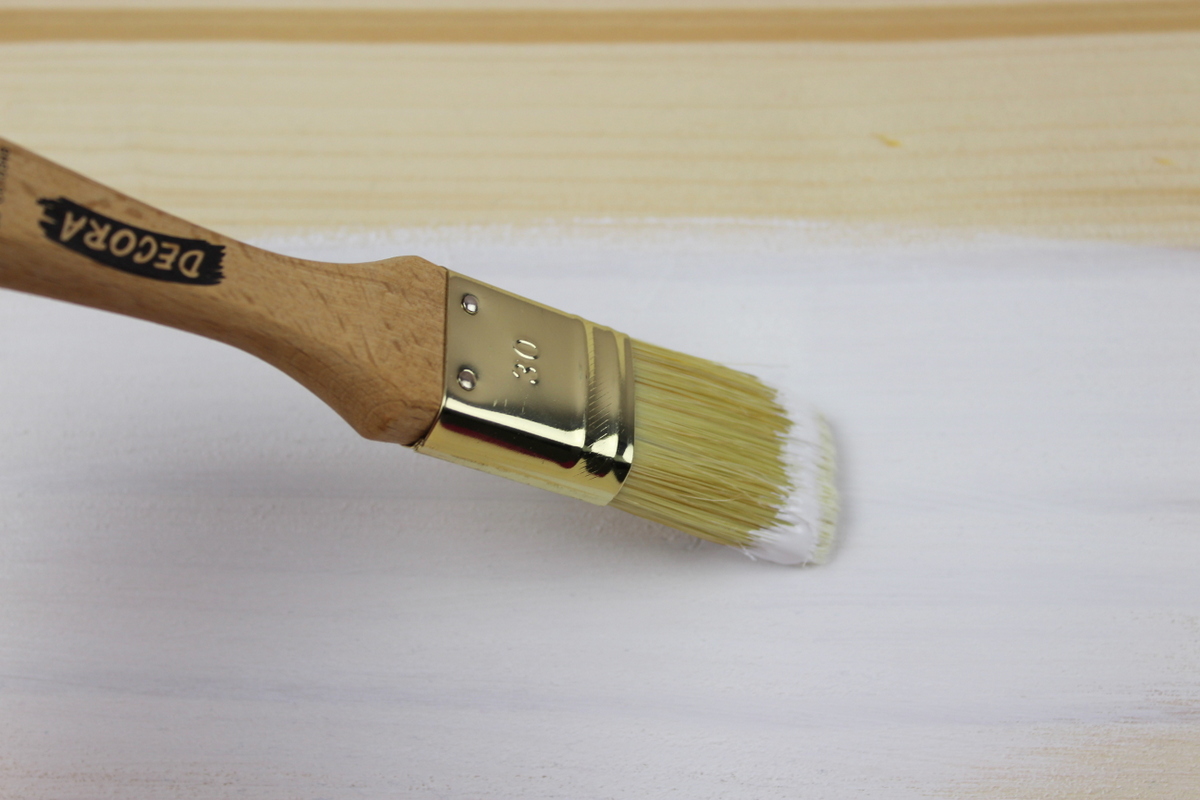 - Wenn alles zusammengeschraubt ist, geht es ans Bemalen! Erst wollte ich es mit Lasur in Kastanie bemalen, habe mich aber spontan doch für weißen Lack entschieden.