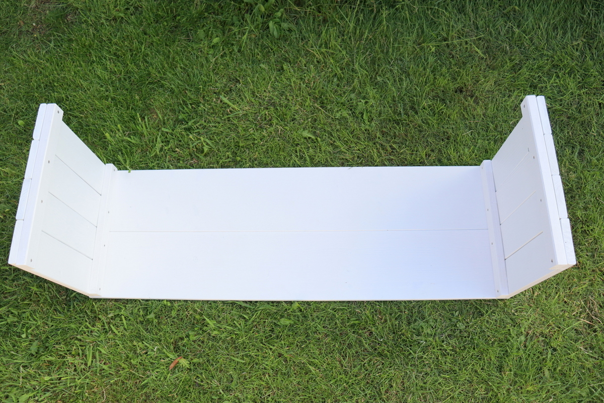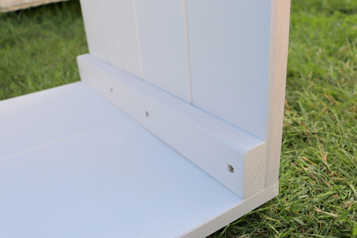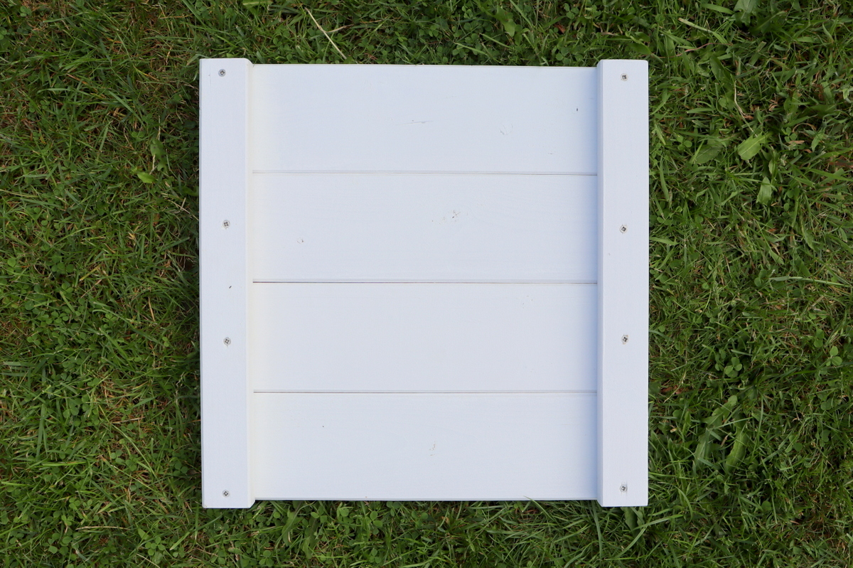 - Zu guter Letzt kommen dann die letzten beiden Bretter. Diese habe ich ebenfalls auf die Seitenteile gelegt und von unten durch das Kantholz nach oben in die Bretter verschraubt. So sieht man keine Schrauben oben auf den Brettern. Ich hoffe, dass ich euch es gut erklären konnte.