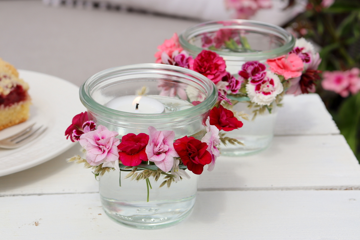 Du liest gerade: DIY – Windlichter mit Blumen verzieren – wundervolle, sommerliche Bastelidee