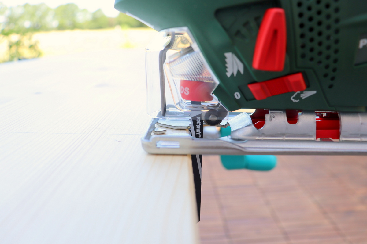 1. Zuerst habe ich meine Leimholzplatten auf Maß gesägt. Ich habe mich für eine Sitzlänge von 140 cm und eine Sitzhöhe von 38 cm entschieden. Dazu habe ich mir die Länge mit einem Winkel und einem Bleistift auf der Platte angezeichnet.DIY - selbstgebaute Gartenbank mit Blumentopf Danach habe ich diese auf die richtige Länge gesägt.DIY - selbstgebaute Gartenbank mit BlumentopfWolfcraft® war so lieb und hat mir den Spann- und Maschinentisch MASTER 700 zur Verfügung gestellt und ich bin total begeistert. Ich darf euch gar nicht verraten, wie ich früher immer Holz gesägt habe, denn das war immer eine äußerst wackelige Angelegenheit und absolut nicht zu empfehlen! Der MASTER 700 eignet sich aber nicht nur um Holz einspannen. Man kann Kapp- und Gehrungssägen oder Bohrständer sicher montieren. Er ist höhenverstellbar und man kann ihn platzsparend zusammenfalten!