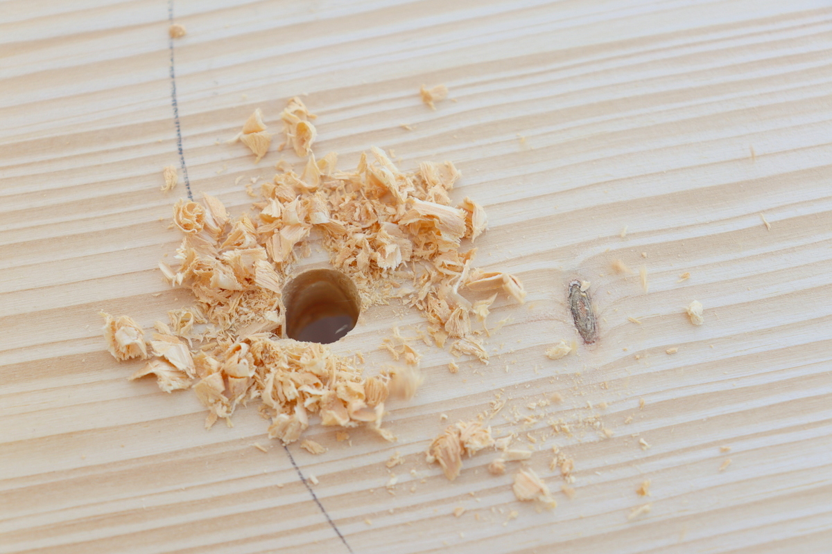 3. Nun gibt es mehrere Möglichkeiten diesen Kreis auszusägen. Ich habe mich dazu entschieden, diesen frei Hand mit der Stichsäge auszusägen. Dazu habe ich erst ein 8 mm Loch mit dem Bohrschrauber in die Platte gebohrt.DIY - selbstgebaute Gartenbank mit Blumentopf Im Anschluss habe ich den Kreis mit der Stichsäge  ausgesägt.DIY - selbstgebaute Gartenbank mit BlumentopfWenn euer Kreis nicht ganz perfekt wird, ist es auch nicht so schlimm, denn der Pflanztopf wird später noch mit Steinen aufgefüllt.DIY - selbstgebaute Gartenbank mit Blumentopf