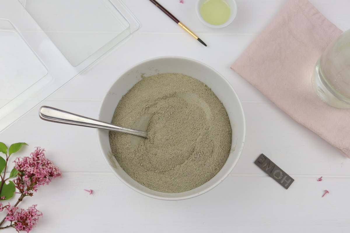 - Danach habe die Form mit etwas Öl eingefettet, so löst sich der Beton nach dem Trocknen leichter. Nun können wir die Form erstmal zur Seite stellen.