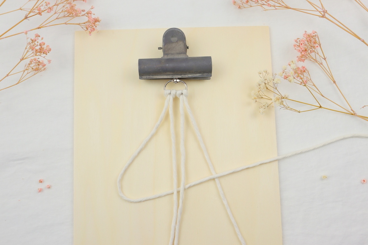 - Damit der Schlüsselring beim Knoten nicht hin und her rutscht, kann man diesen mit etwas Klebeband festkleben. Ich habe mir ein kleines Klemmbrett gebaut. Das ist auch sehr empfehlenswert.