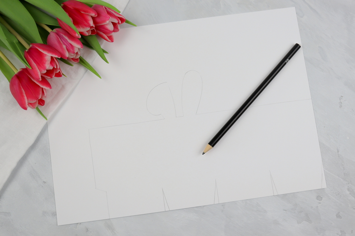 Übertragt die Vorlage mit einem Bleistift auf Aquarellpapier. Optional könnt ihr hier auch dickeres Bastelpapier verwenden. Ich finde, dass die Farben aber besonders schön auf Aquarellpapier verlaufen.