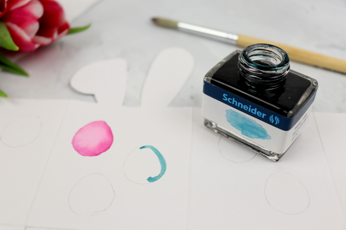 - Das Lettering habe ich mit Absicht sehr schlicht gestaltet, denn jetzt kommt Farbe ins Spiel. Ich wollte mal gucken, ob man mit der Pastelltinte auch kleine Ostereier in Aquarelltechnik malen kann und ja es klappt super gut. Hier ein kleiner Crashkurs zum Thema Aquarellmalerei. Es gibt mehrere Techniken, die man anwenden kann, um Aquarell zu malen. Die gängigsten sind entweder das Motiv mit Wasser komplett auszumalen und dann die Farbe hinzuzugeben, oder einen Teil mit Farbe anzumalen und dann mit Wasser in die Farbe zu gehen. Ich habe mich für die zweite Variante entschieden.