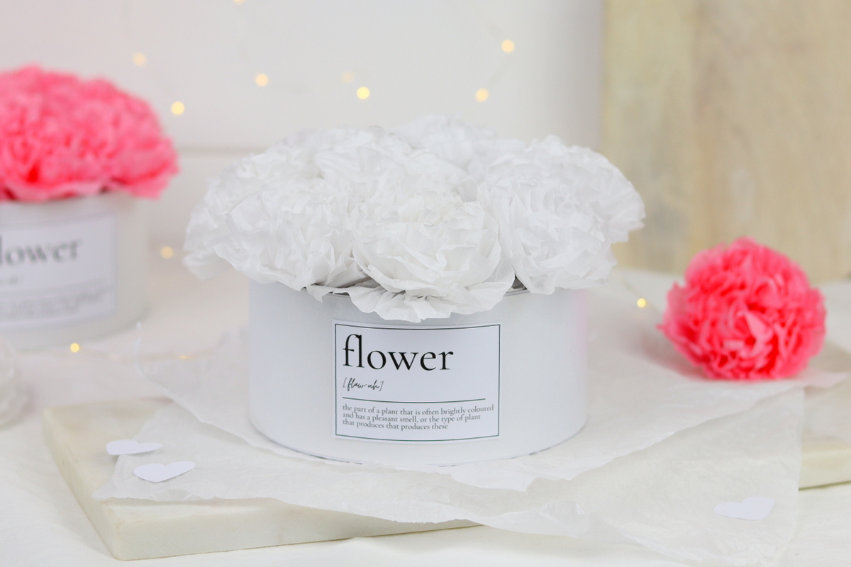 Zusätzlich zu den Blumen aus Papier habe ich mir eine kleine Idee einfallen lassen, wie ihr diese Blumen auch verschenken könnt. Flowerboxen, Blumenboxen oder Rosenboxen genannt sind seit ein paar Jahren total im Trend und ich dachte, dass diese doch perfekt für die Blumen aus Papier passen würden. Gedacht getan. Ich finde, dass diese Bastelidee nicht nur eine wunderschöne Deko ist, sie eignet sich auch als super süße Geschenkidee zum Muttertag. Der ist übrigens bald! 🙂