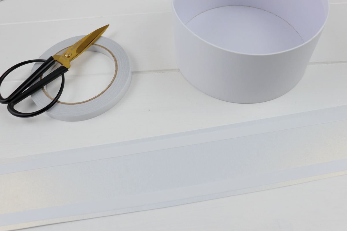 - Ich bin ein echter Fan von doppelseitigem Klebeband, deswegen habe ich das Papier mit doppelseitigem Klebeband an die Box geklebt.