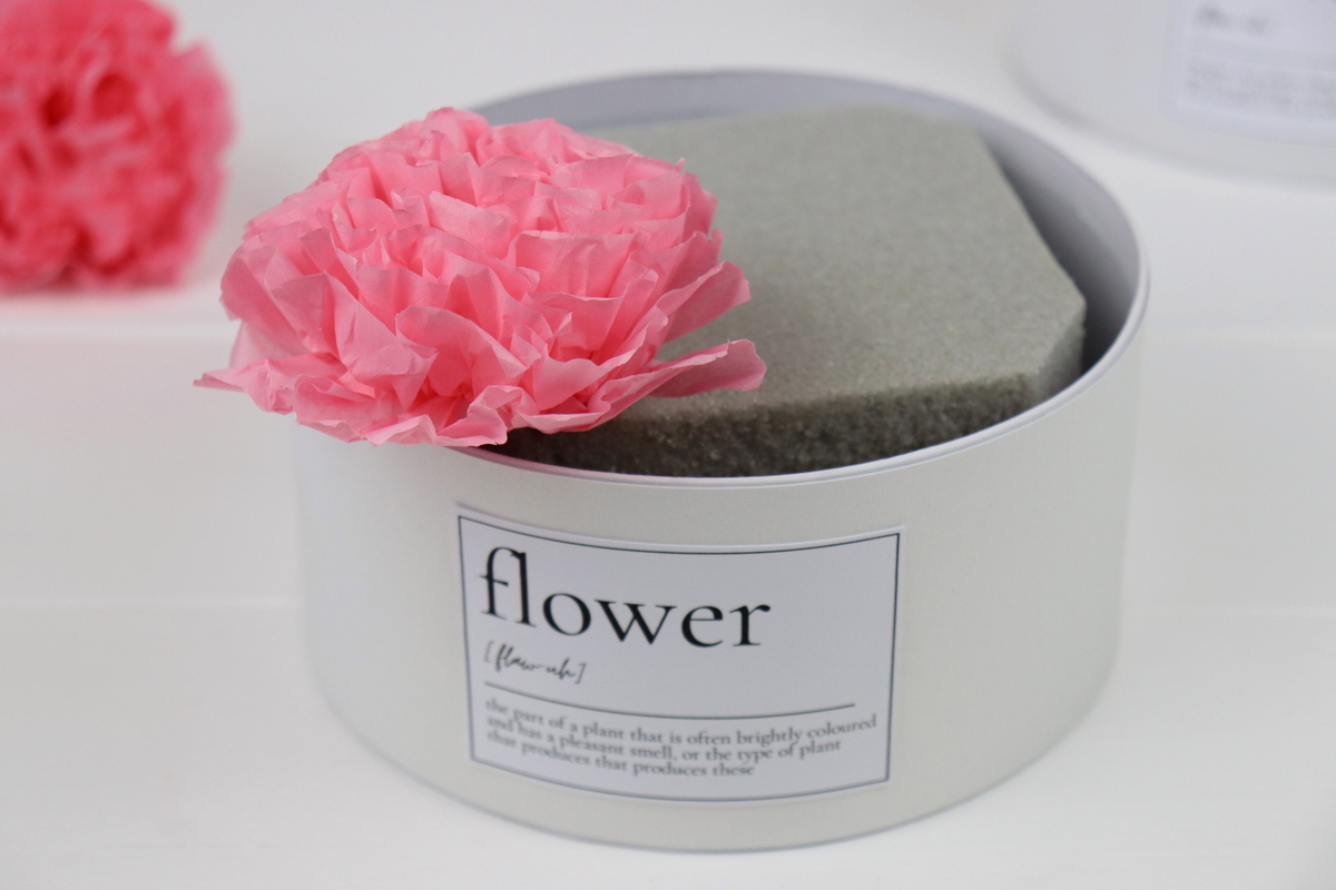 So halten die Papierblumen richtig gut in der Box und kullern nicht durch die Gegend. Apropro halten. Das tolle an diesem DIY ist, dass die Blumen einfach ewig halten und nicht wie frische Blumen eingehen.