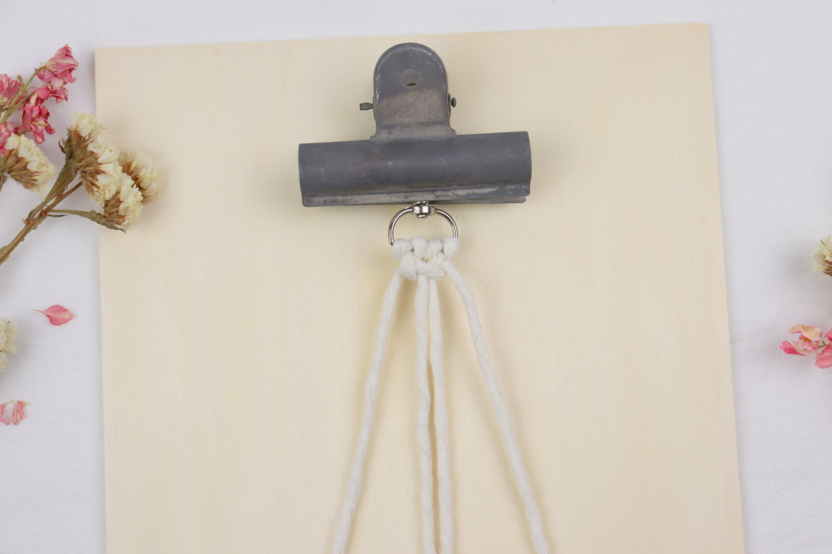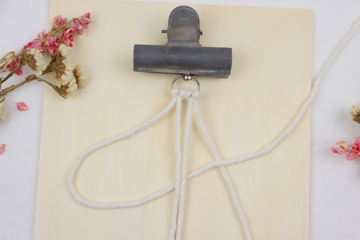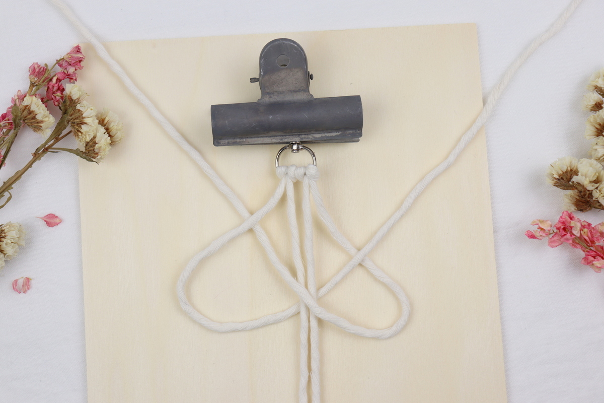 - Für den Makramee Spiralknoten braucht ihr 4 einzelne Garne oder 2 Doppelgarne.