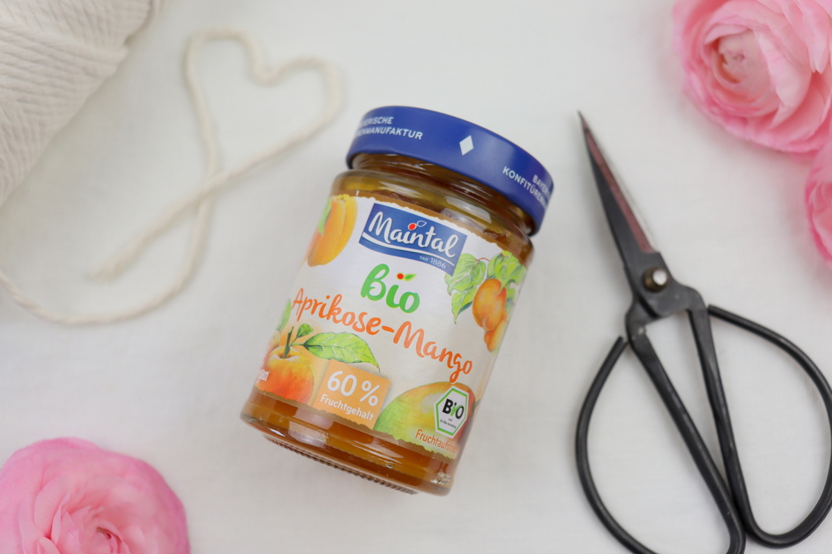 Heute darf ich euch die Sorte Bio + vegan Aprikose-Mango Fruchtaufstrich vorstellen. Der vegane Fruchtaufstrich hat einen 60%-igen Fruchtanteil, um genau zu sein besteht er zu 38% aus Bio-Aprikosen und zu 22% aus Bio-Mangos. Dadurch schmeckt er für mich nach Sommer und nach der Wärme des Südens. Da passt doch dieses sommerliche DIY perfekt.