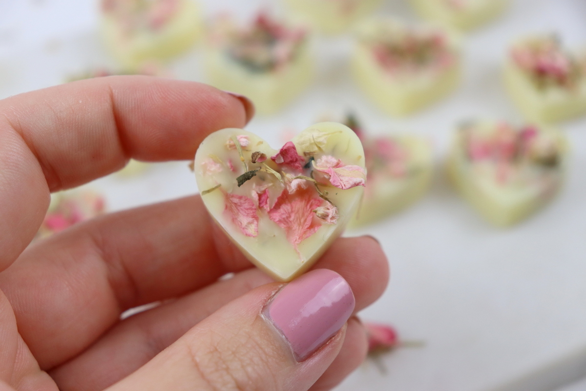 - Danach könnt ihr eure Massagebar Herzen einfach aus der Form lösen.