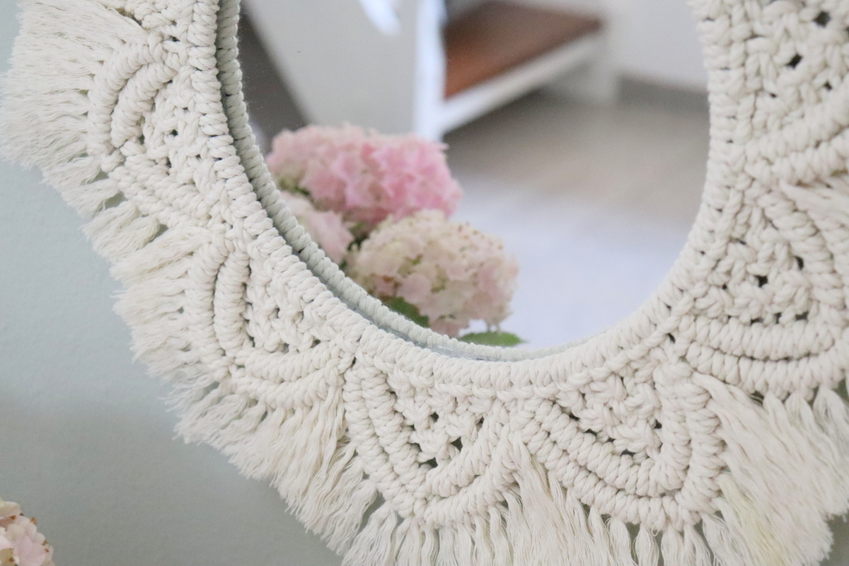 [Werbung] Endlich ist es so weit und ich kann euch ein DIY zeigen, dass ich schon so lange vor habe, selber zu machen. Nun ist es endlich so weit und ich kann euch endlich meinen wunderschönen Makramee Spiegel zeigen. Natürlich habe ich euch wieder eine ausführliche Anleitung geschrieben, wie ihr diesen Makramee Spiegel selber machen könnt! 🙂Das Makramee basiert auf drei unterschiedlichen Knoten. Als absoluter Makramee Neuling würde ich euch empfehlen, vorher mit ein paar einfacheren Makramee-DIYs zu starten. Wie z.B. mit diesen zuckersüßen Makramee Sternen, diesen wunderschönen Makramee Windlichtern oder diesen tollen Makramee Schlüsselanhängern. Für die Anleitung einfach auf den Namen klicken.
