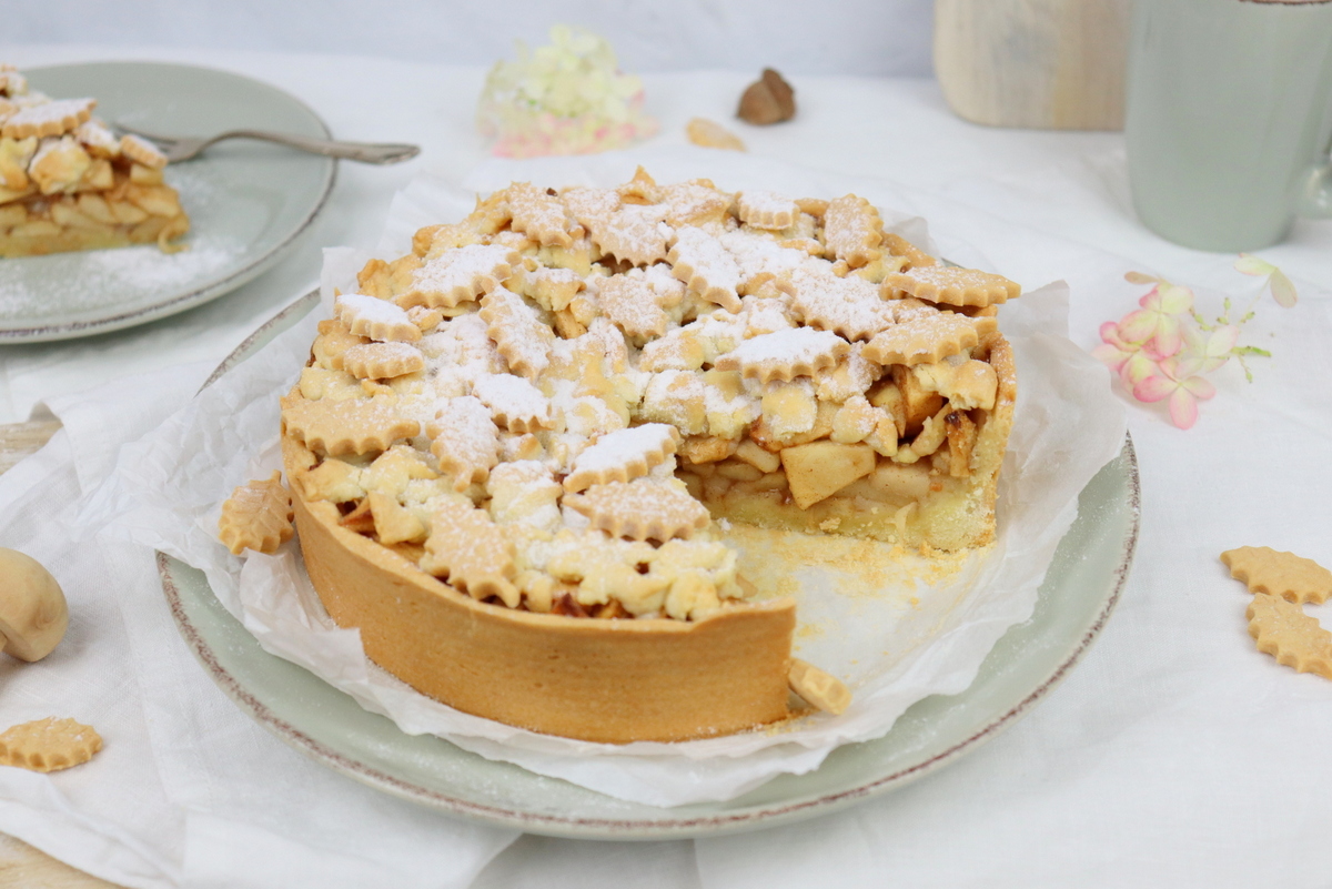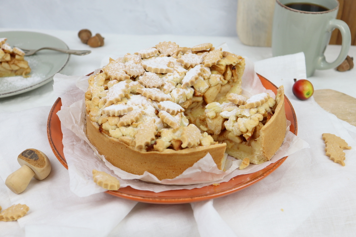 Besonders gerne backe ich diesen Kuchen zur Herbstzeit, denn dann ist Apfelernte und was gibt es geileres als ein frisch gebackener Apfelkuchen mit frischen Äpfeln. Damit er auch so richtig herbstlich aussieht, habe ich ihn zusätzlich mit kleinen Blätterkeksen verziert.