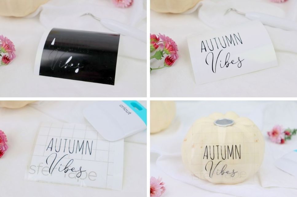 - Nun geht es ans Übertragen der Schrift. Legt dazu das Transfer Tape auf den Kürbis und drückt es mit dem Rakel etwas fest. Natürlich kann man hier nicht so dollen Druck verwenden, deswegen solltet ihr die Folie noch vorsichtiger abziehen und die Buchstaben ggf. etwas mit dem Finger andrücken.