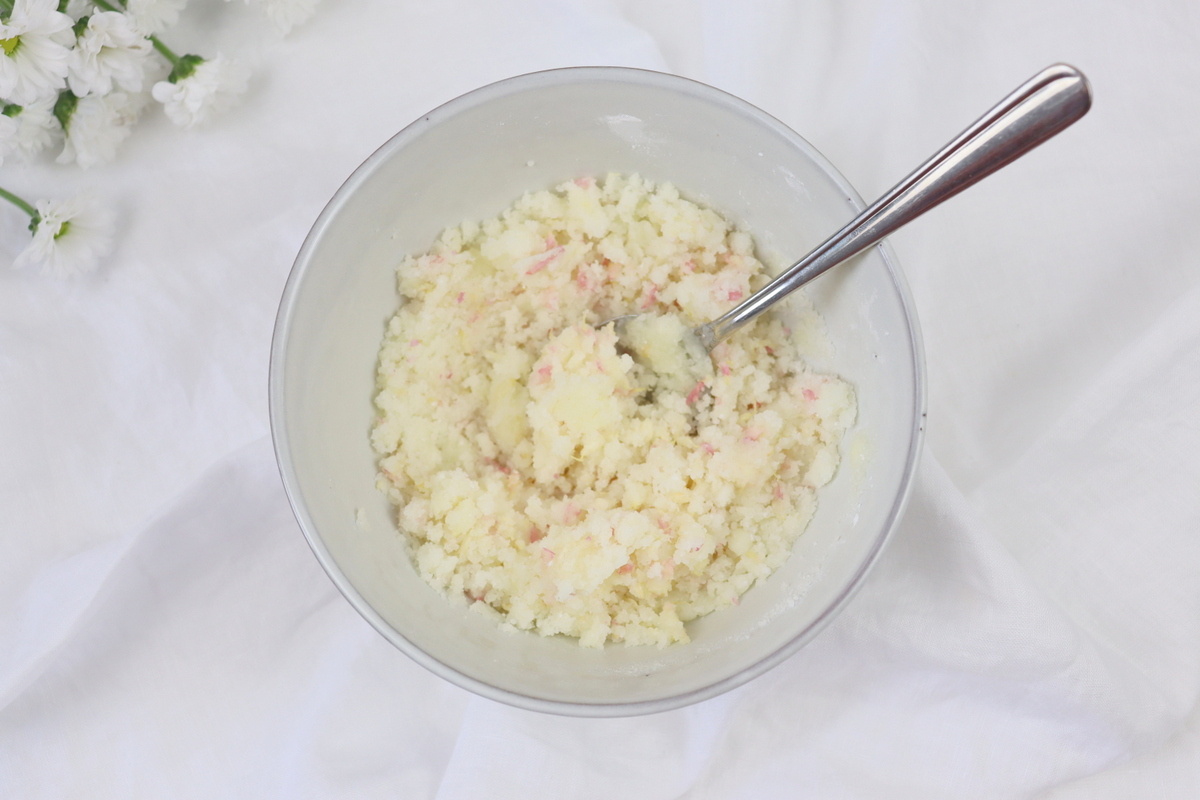 - Wenn ihr eure Kugeln geformt habt, könnt ihr diese noch in Blütenblättern wälzen. Meine Blütenblätter habe ich übrigens von einem Blumenstrauß. Kurz vor dem Verwelken habe ich die Blütenstiele aus der Vase entfernt und in ein Vase ohne Wasser zum Trocknen gestellt.