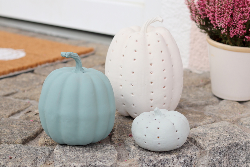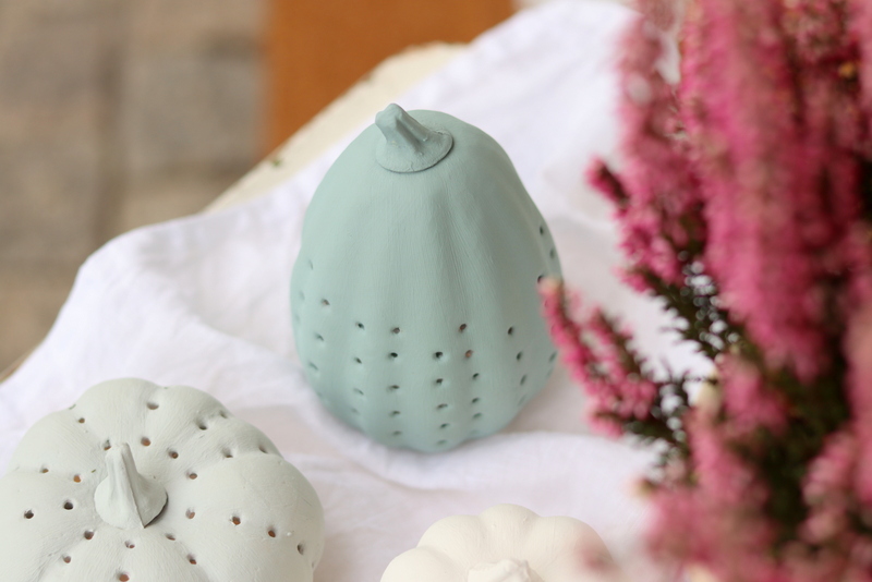 Die Designfarbe Harmonisches Jadegrün ähnelt sehr dem Blue Doll Kürbis. Außerdem ist sie meine absolute Lieblingsfarbe, denn so habe ich meinen Flur gestrichen. 🙂 Den Beitrag dazu findet ihr >>hier<<. Als Farbton für den Baby Boo habe ich Leichtes Leinenbeige verwendet. Eine mega schöne Farbe. Damit muss ich auch unbedingt noch eine Wand hier streichen. Und da alle guten Dinge drei sind, habe ich noch die Farbe Erhabenes Agavengrün für meine Kürbisse verwendet. Die Kombination aus den 3 Farben ist so schön oder was sagt ihr?