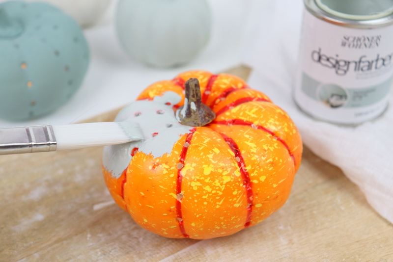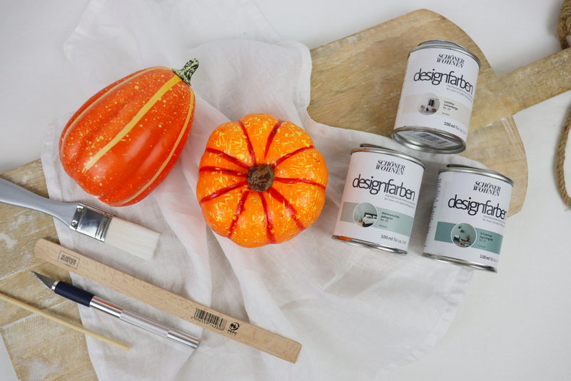 [Werbung für SCHÖNER-WOHNEN-Farbe] Wenn ich an den Herbst denke, denke ich an Kürbisse. Wie kann man auch nicht? Ich finde Kürbisse unglaublich. Die unterschiedlichen Formen und Farben sind einfach wunderschön. Weil mir Kürbisse so gut gefallen, schnitze ich mir jedes Jahr Kürbis Laternen. Ich ärgere mich aber auch jedes Jahr, dass sie so super schnell nicht mehr schön aussehen und eingehen. Aus diesem Grund habe ich mir unechte Kürbisse besorgt, um dieses Jahr haltbare Kürbis Laternen zu machen, die ich jedes Jahr wieder verwenden kann.
