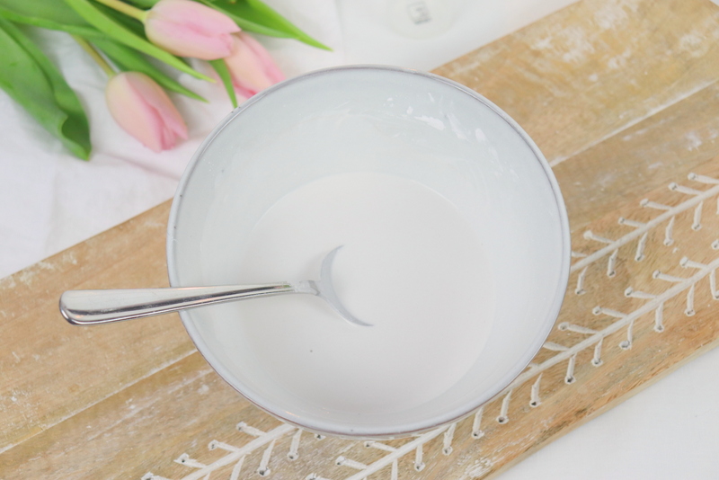 - Vermischt zunächst euer Raysin mit Wasser. Verwendet lieber kaltes anstatt warmes Wasser. Das Mischverhältnis ist 3,5 (Raysin) : 1 (Wasser). Ich verwende das Raysin 200, da dieses feiner als das Raysin 100 ist und gerade bei den Untersetzern und den feinen Linien ist dies perfekt.