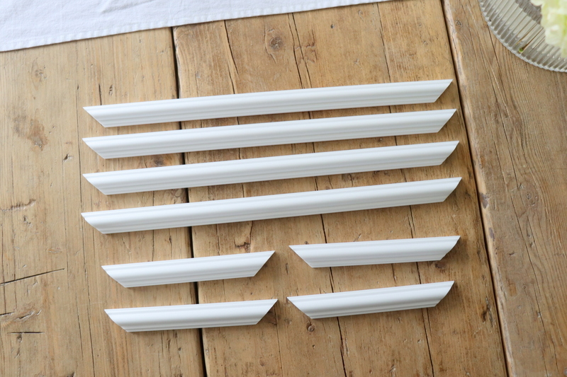 - Die Leisten habe ich dann ebenfalls noch mit weißer Lackfarbe bemalt, damit der Farbton auch genau gleich ist.