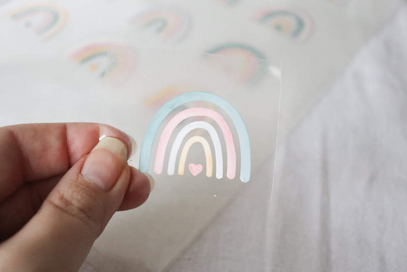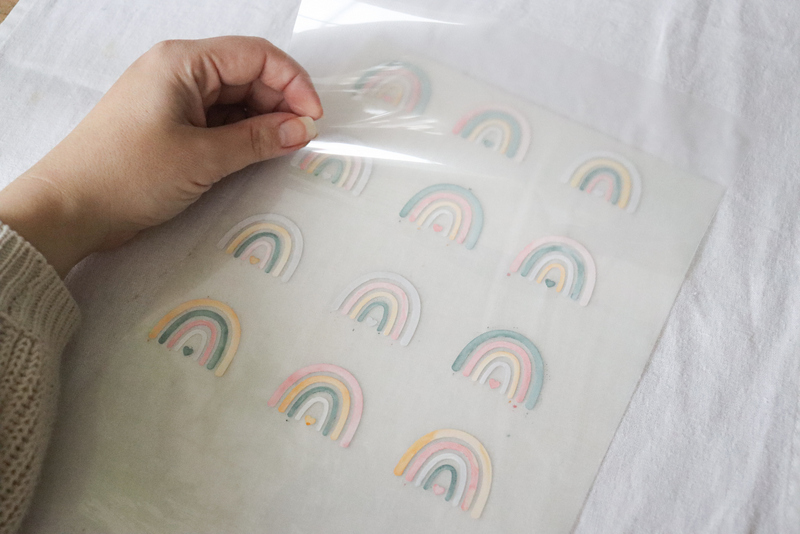 14. WICHTIG!!! Zieht die Transferfolie im warmen, aber nicht heißen Zustand ab, ansonsten kann es passieren, dass sich der Regenbogen löst. Wenn ihr die POLI-TAPE® COLOR UP Folie mit dem Laserdrucker bedruckt, solltet ihr die Transferfolie erst dann abziehen, wenn sie kalt ist.