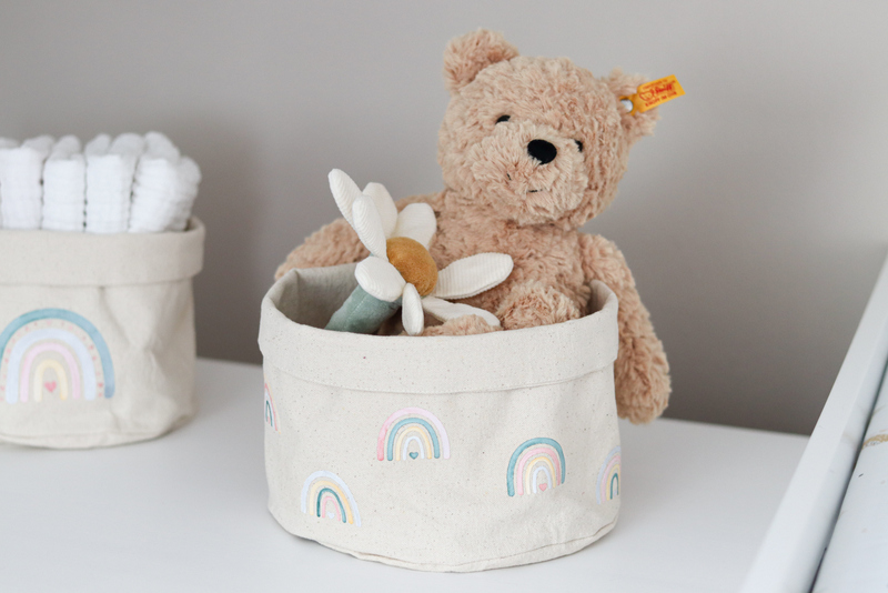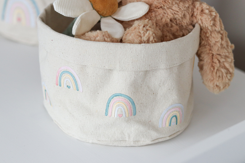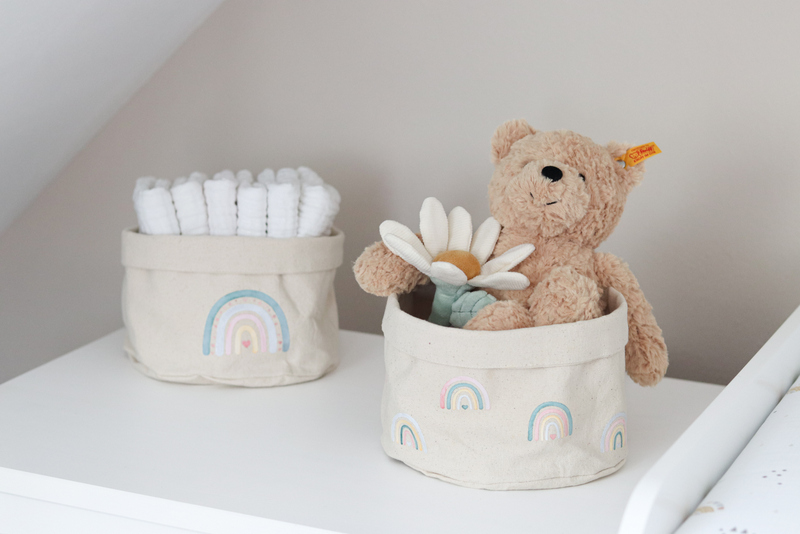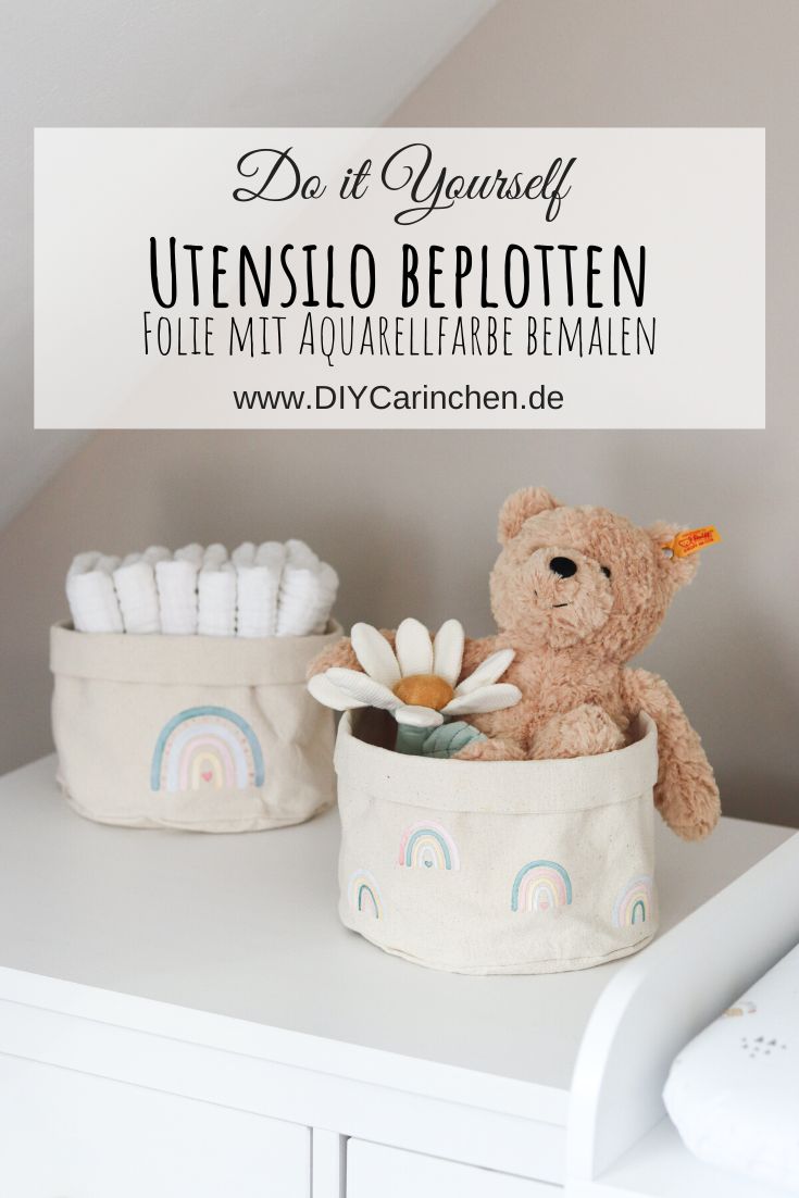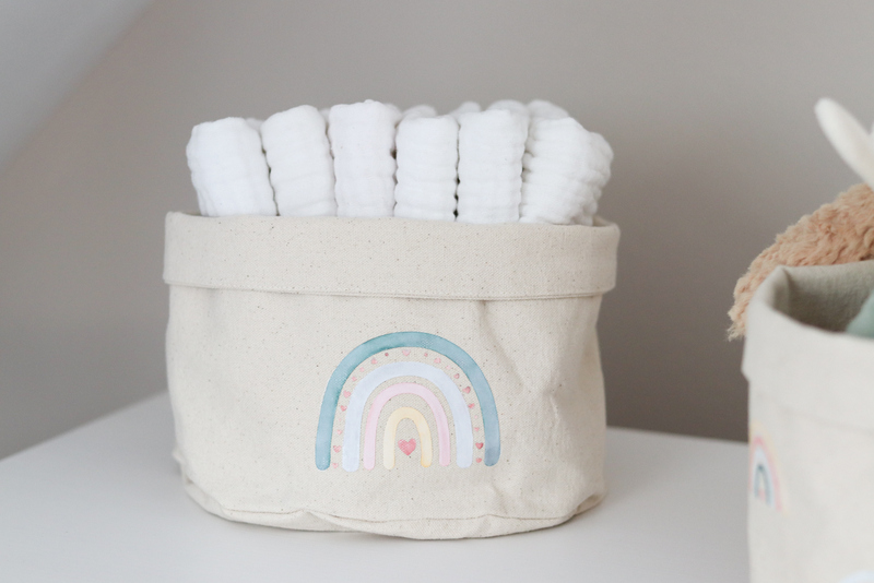 Das habe ich dann gleich ein paar Mal mehr gemacht. Damit beide Körbchen nicht gleich aussehen, habe ich das andere Utensilo noch mit einem größeren Regenbogen geplottet. Dazu gibt es übrigens ein Video auf meinem Instagram-Kanal.