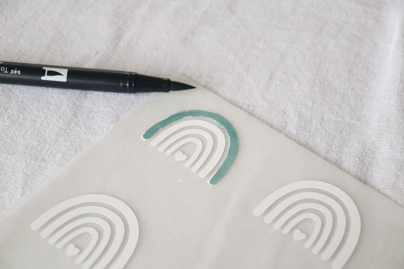 Und was soll ich sagen? Ich bin total begeistert. Ich liebe diese Folie einfach. Seit Jahren male ich total gerne Aquarellbilder, egal ob mit einem Aquarellmalkasten oder mit Aquarellstiften. Für diese Anleitung habe ich mich erst einmal für ein einfaches Motiv entschieden, denn ich wollte für meine Mädels Utensilos mit Regenbögen machen.