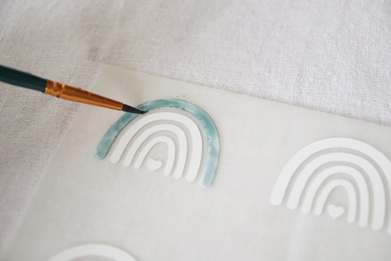 - Wenn eure Aquarellfarbe getrocknet ist, klebt ihr eure POLI-TACK Transferfolie 870 auf eure Regenbögen.