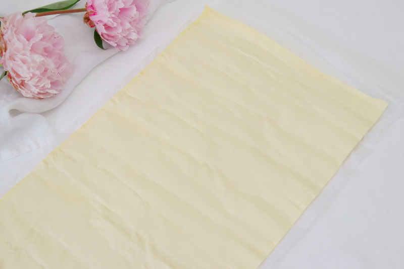 - Danach habe ich das Papier vom Blätterteig entfernt.