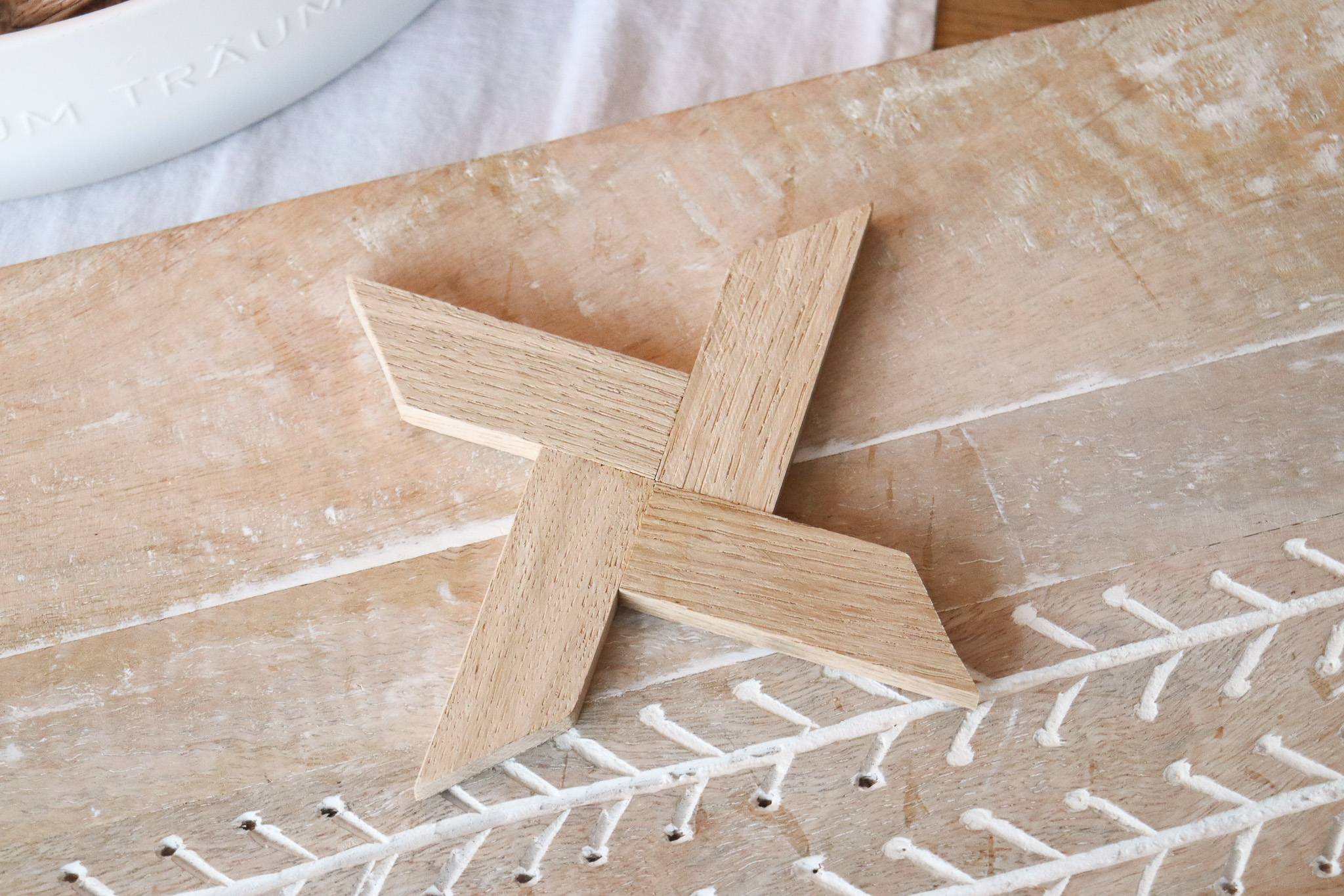 - Wer seine Holzsterne wie ich aufhängen möchte, kann nun ein kleines Loch in eine Zacke des Sterns bohren. Ich habe einen 2mm Holzbohrer verwendet.