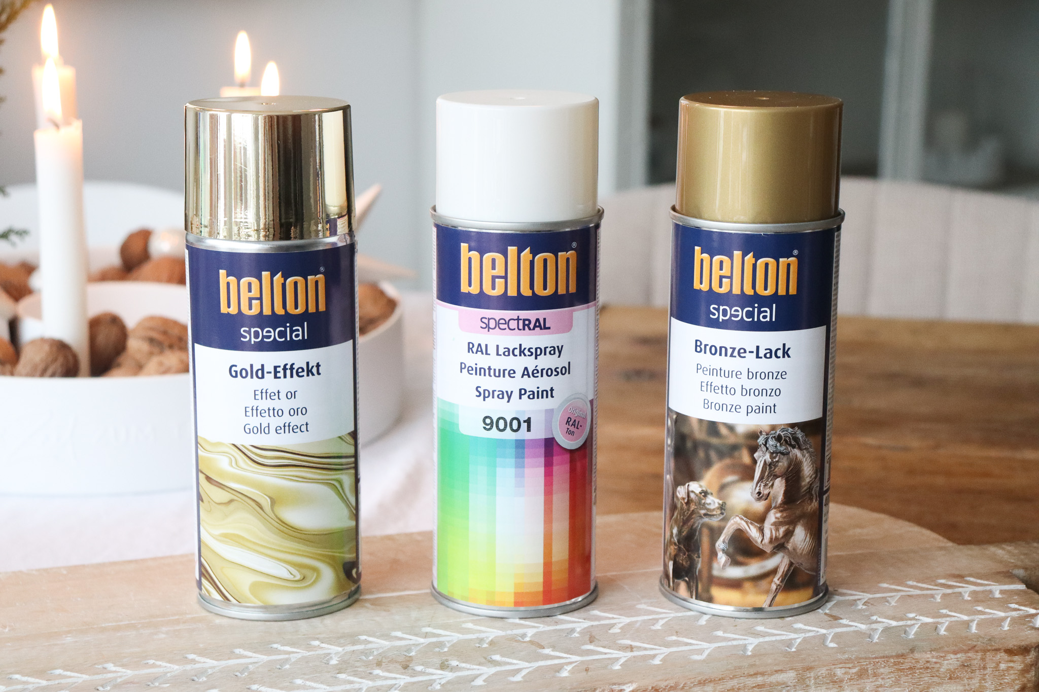 - Dann geht es direkt weiter, ihr braucht die Universalgrundierung nicht trocknen lassen. Nehmt euch dann euren belton® Sprühlack in eurer Lieblingsfarbe, schüttelt ihn wieder und sprüht ebenfalls 2-3 dünne Schichten in einem Abstand von 15-25 cm auf die Dose.