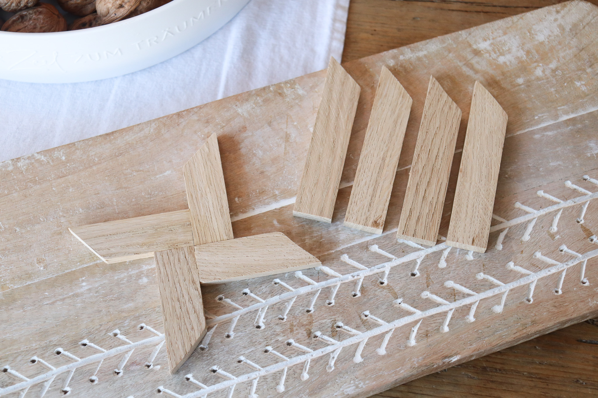 - Werft die Reststücke nicht weg. Diese brauchen wir jetzt noch.