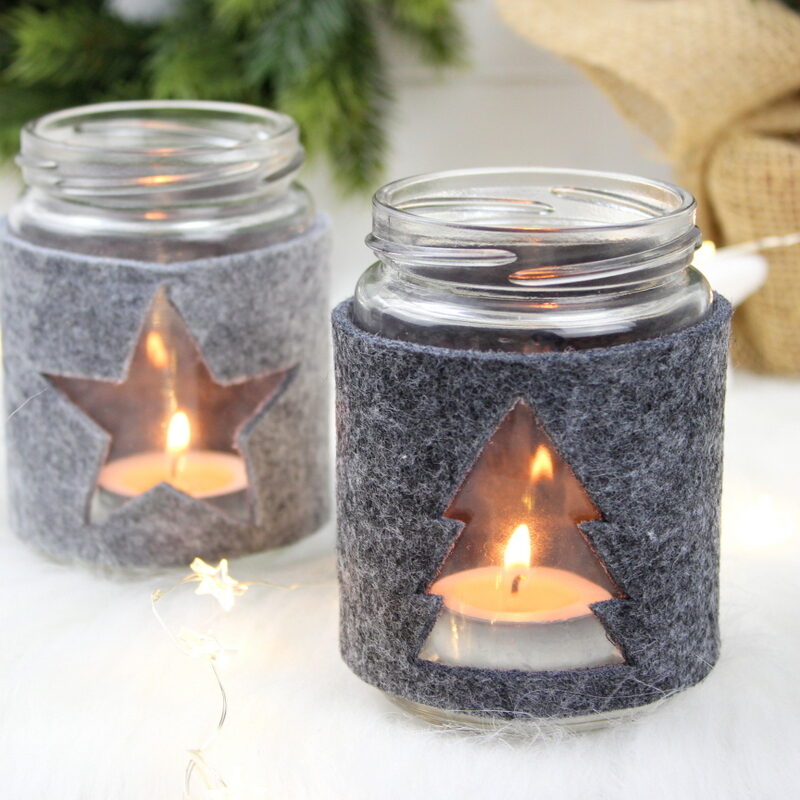 DIY – weihnachtliche Windlichter aus Filz einfach und schnell selbermachen + kostenlose Vorlage